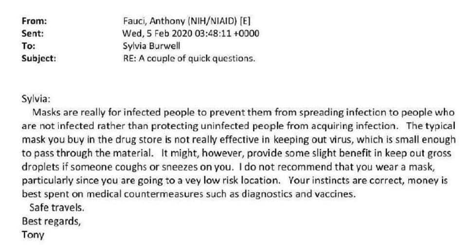 It turns out that the Fauci emails completely contradict the narrative on masks, asymptomatic spread, the possible engineering of the virus, the concern on rushing the vaccine, quarantining healthy people, and big tech’s involvement with the spin, etc….